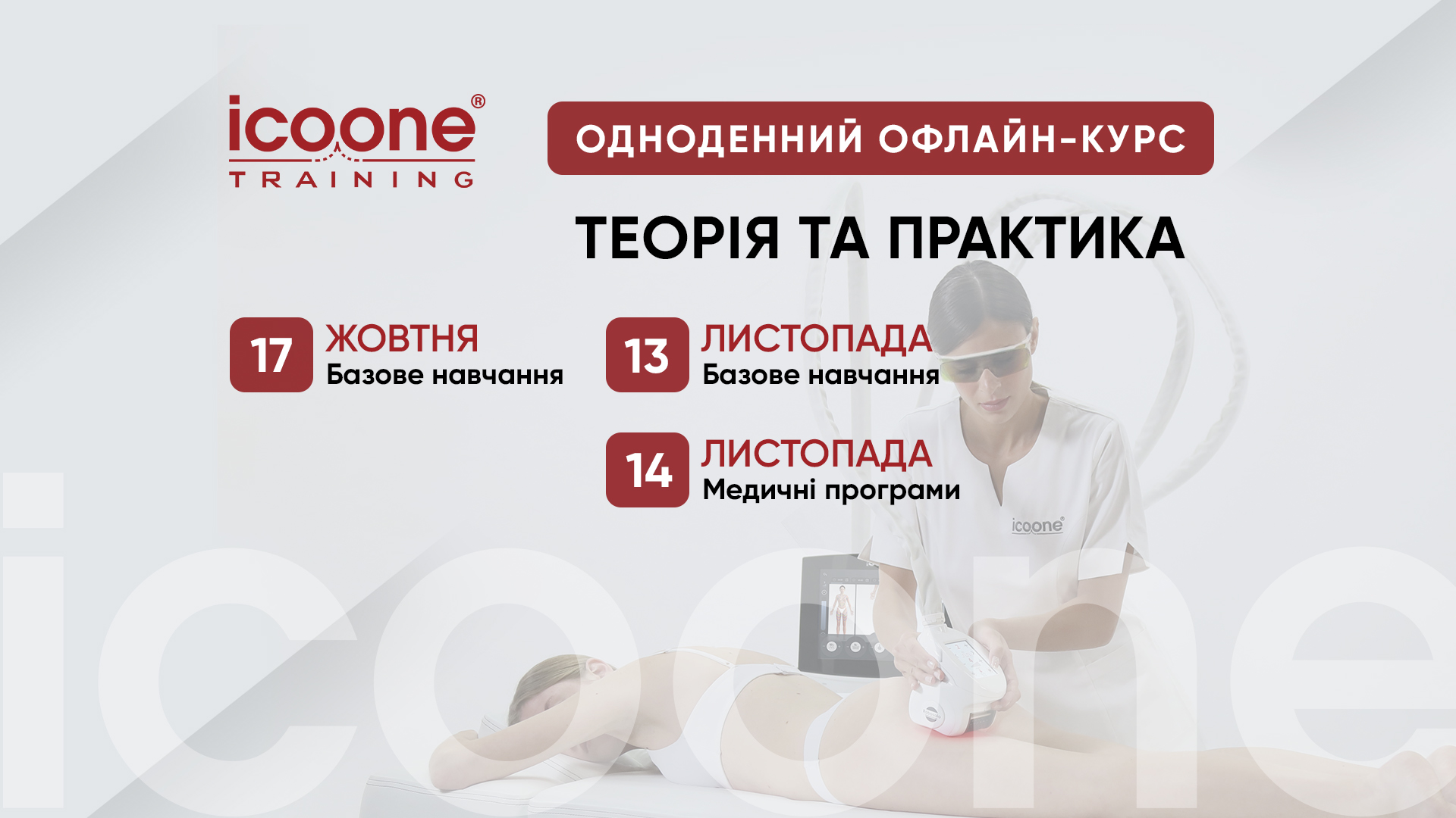 Програма курсу складається з теоретичного блоку та практичного відпрацювання на апараті icoone LASER MED: